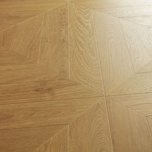 Quick-Step Impressive Pattern là sàn gỗ công nghiệp cao cấp nổi bật với thiết kế lát vân kiểu “Chevron” hoặc “Royal Oak” vô cùng ấn tượng, biến mỗi tấm sàn thành một phần trang trí nghệ thuật và hiện đại. Bên cạnh vẻ thẩm mỹ sang trọng, sản phẩm còn được trang bị lớp chống nước HydroSeal, bề mặt chống trầy Scratch Guard, và hệ thống hèm Uniclic dễ lắp đặt — là sự kết hợp hoàn hảo giữa nét đẹp và độ bền cao .
