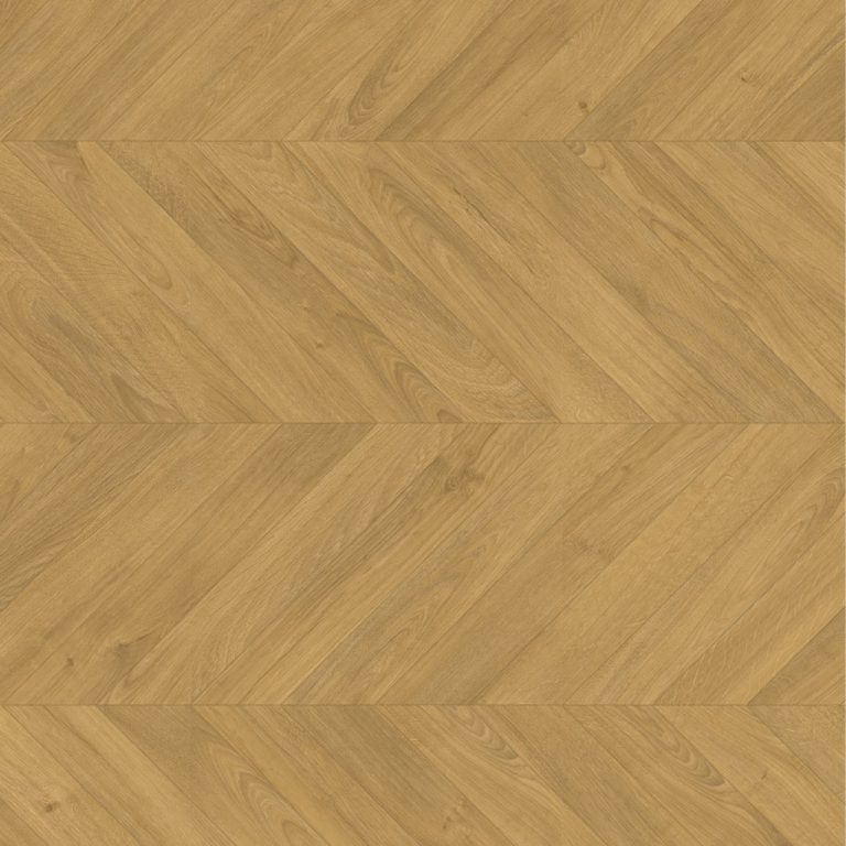 Quick-Step Impressive Pattern – Mã màu IPA4161 – nổi bật với sắc gỗ sồi tự nhiên ấm áp với tông beige nhẹ nhàng, tạo cảm giác gần gũi, tinh tế cho không gian nội thất. Họa tiết Chevron phối ngang theo kiểu zigzag thanh thoát tăng chiều sâu cho sàn và làm nổi bật đường vân gỗ chân thật như gỗ thật.