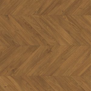 Quick-Step Impressive Pattern – Mã màu IPA4162 – nổi bật với sắc gỗ sồi nâu đậm, tông trầm ấm tạo cảm giác ấm cúng và lịch lãm, trong khi họa tiết Chevron (zigzag) khắc họa chiều sâu và nét nghệ thuật tinh tế trên sàn.